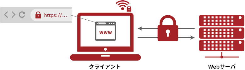 たとえば、今こうしてWebページを閲覧している間にもサイバーセキュリティに関わる技術は使用されています。このページのURLは、「https://」から始まっています。これは、Webサーバとクライアント(Webページ閲覧者)間の通信を、盗聴や改ざんがされにくいTLSまたはSSLというセキュアな方法で行っていることを示しています。